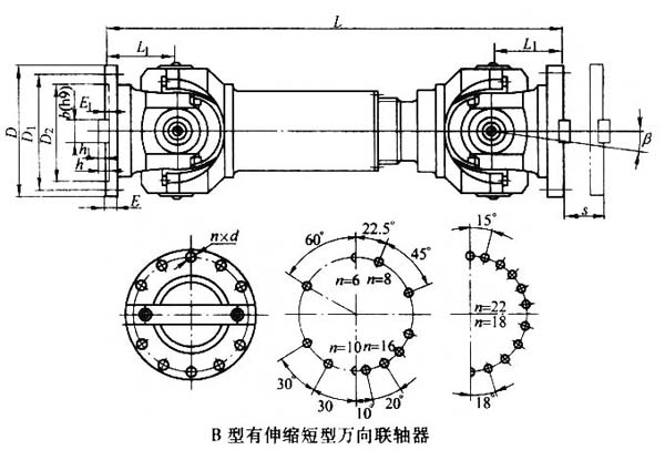 SWP-B型有伸縮短型萬向聯軸器特點及應用場合:軸承是易損件.為便于更換軸承,將軸承座壓蓋作成剖分式,螺栓聯接,可在β≤5°~10°工況下工作。適用于軋鋼機械、起重運輸機械、工程機械、礦山機械、石油機械及其他重型機械,聯接兩個不同軸線的軸系傳動,不能緩沖、減振。