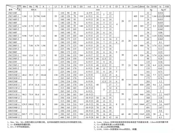 JXC SWF系列萬向聯軸器(起重機多用):回轉直徑:225-620mm,公稱扭矩:50-1120KN.M,疲勞扭矩:25-560KN.m